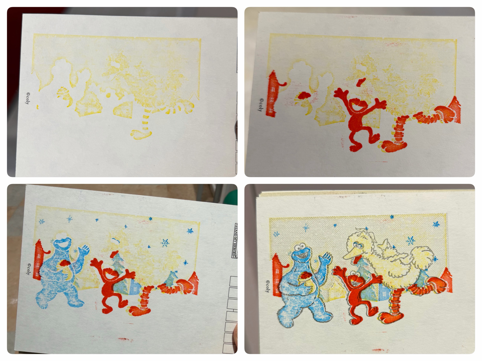 It was time for a stamp rally. We had seen this one the day before, and the goal was to create an image by using four different stamps scattered around the mall. Cards were provided as well as a frame to align the stamps correctly but I wanted to use my own postcards which didn’t fit into the frame. Finesse was therefore required.,.
