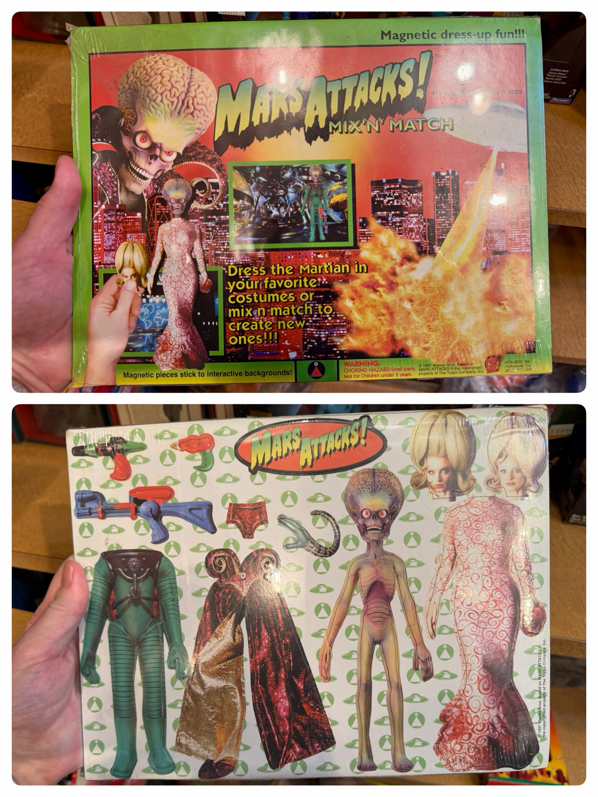 I tried again. It was just him and I, and I stood virtually in front of him. Even if he didn’t hear me he certainly could see me. Again, he didn’t reply. I assumed he didn’t want to deal with a foreigner and left. Alas, no Mars Attacks paper doll for Bernard!