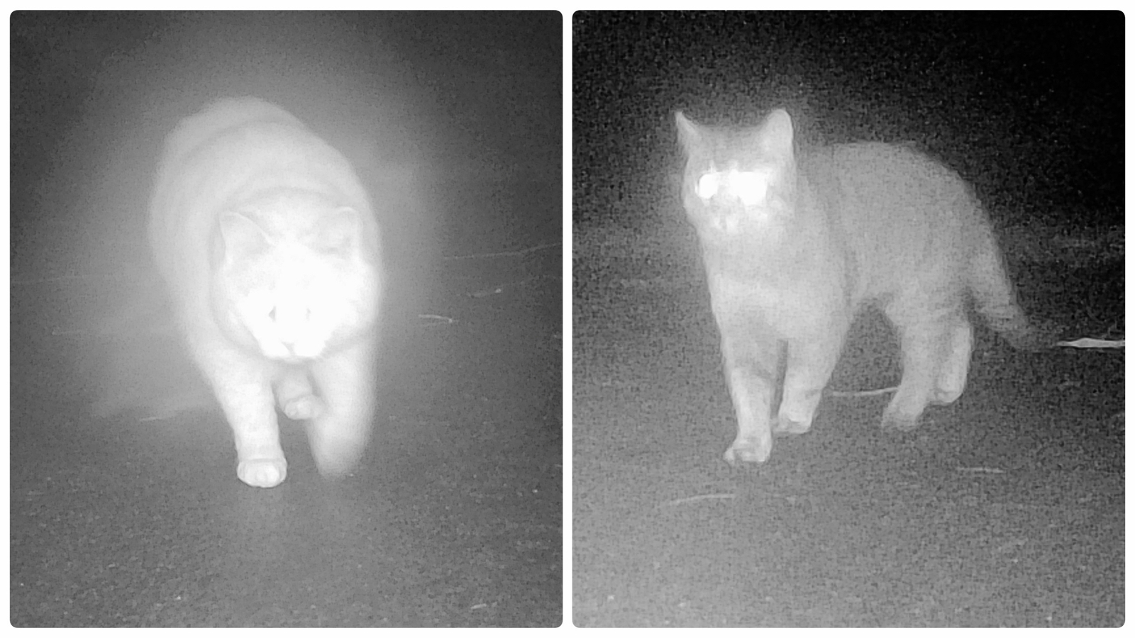 Two different cats visited these past few months, one quite a bit portlier than the other. Each was only in a single photo, so they were just passing through.