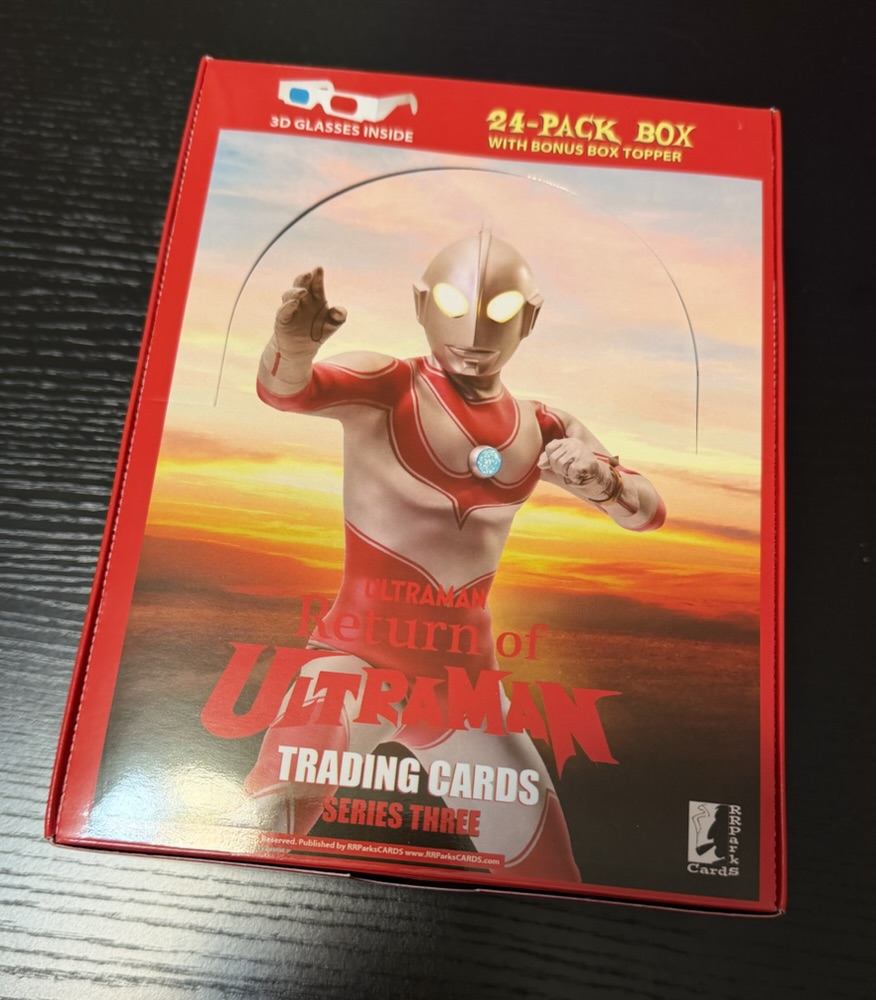 This is the third series of Ultraman cards from RRParks, which once again I got via Kickstarter. This set covers the third Ultraman series, ‘The Return Of Ultraman’ which these days is called Ultraman Jack. The box has been aging in a closet for over a year now, and it was finally time to open it!