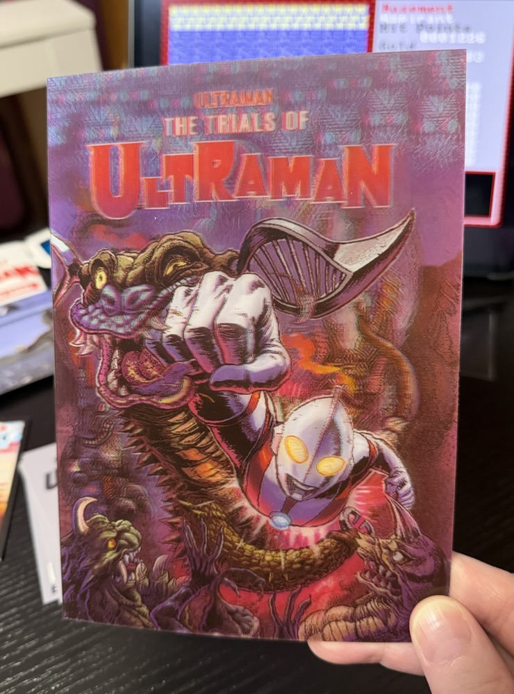 The Kickstarter sold out instantly (almost literally: it reached its funding budget in under a half hour) and I’m still amazed that the best Ultraman card sets ever come from a small independent American company (which may even be a single man)!