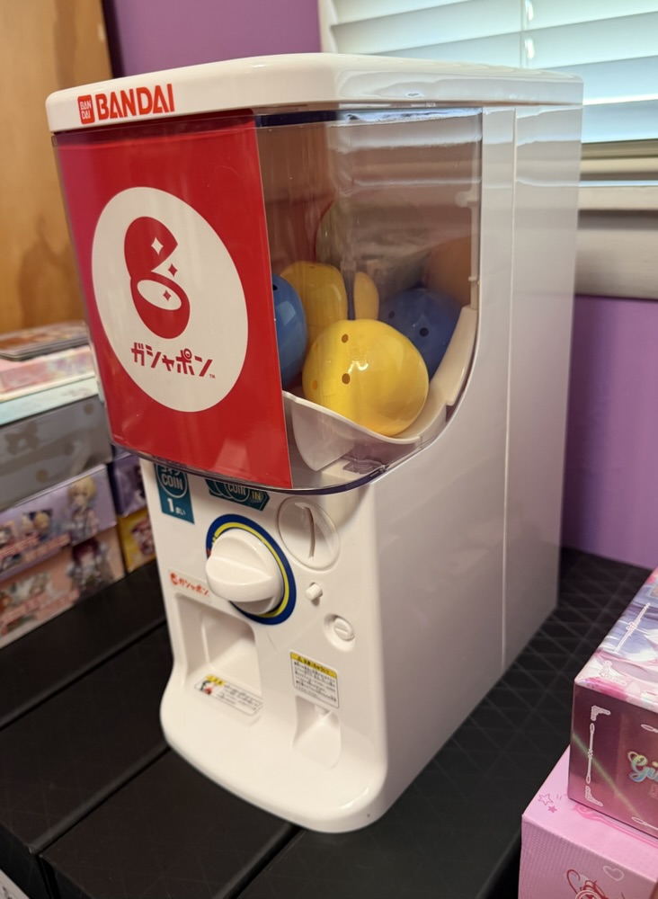 It works well and looks cute, and now we just have to fill it! Every time we visit Japan we bring unopened gacha balls back with us to open over time. On our upcoming trip we’re going to pick up many of the smaller ball prizes so we can use this machine for months. 🙂