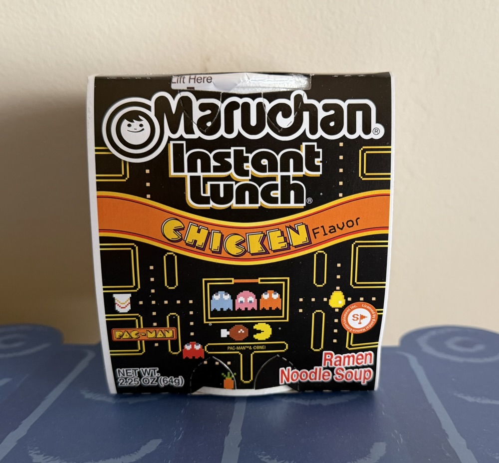 The ramen itself is identical to the normal Maruchan chicken, which is to say the cup and lid has no Pac-Man branding at all. The taste is ‘ok’, which is to say I wouldn’t have eaten this were it not for the branding, which means the marketing worked!