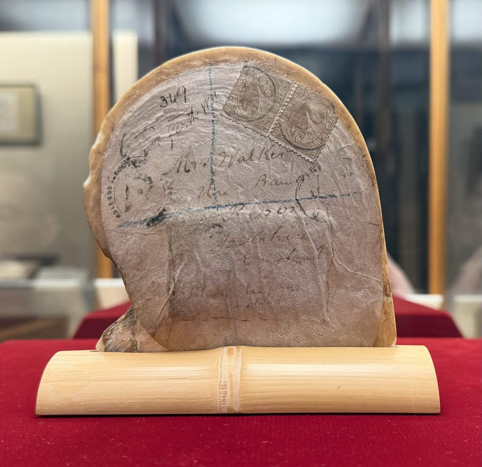 The museum catalogued the history of postage in Japan with (literal) walls of text accompanied by stamps. Hundreds of stamps were showcased, dating back to the penny black from the 1800s. It was specific to Japan, except for a few exceptions such as this pearl shell ‘postcard’ sent from Australia to England in 2007: