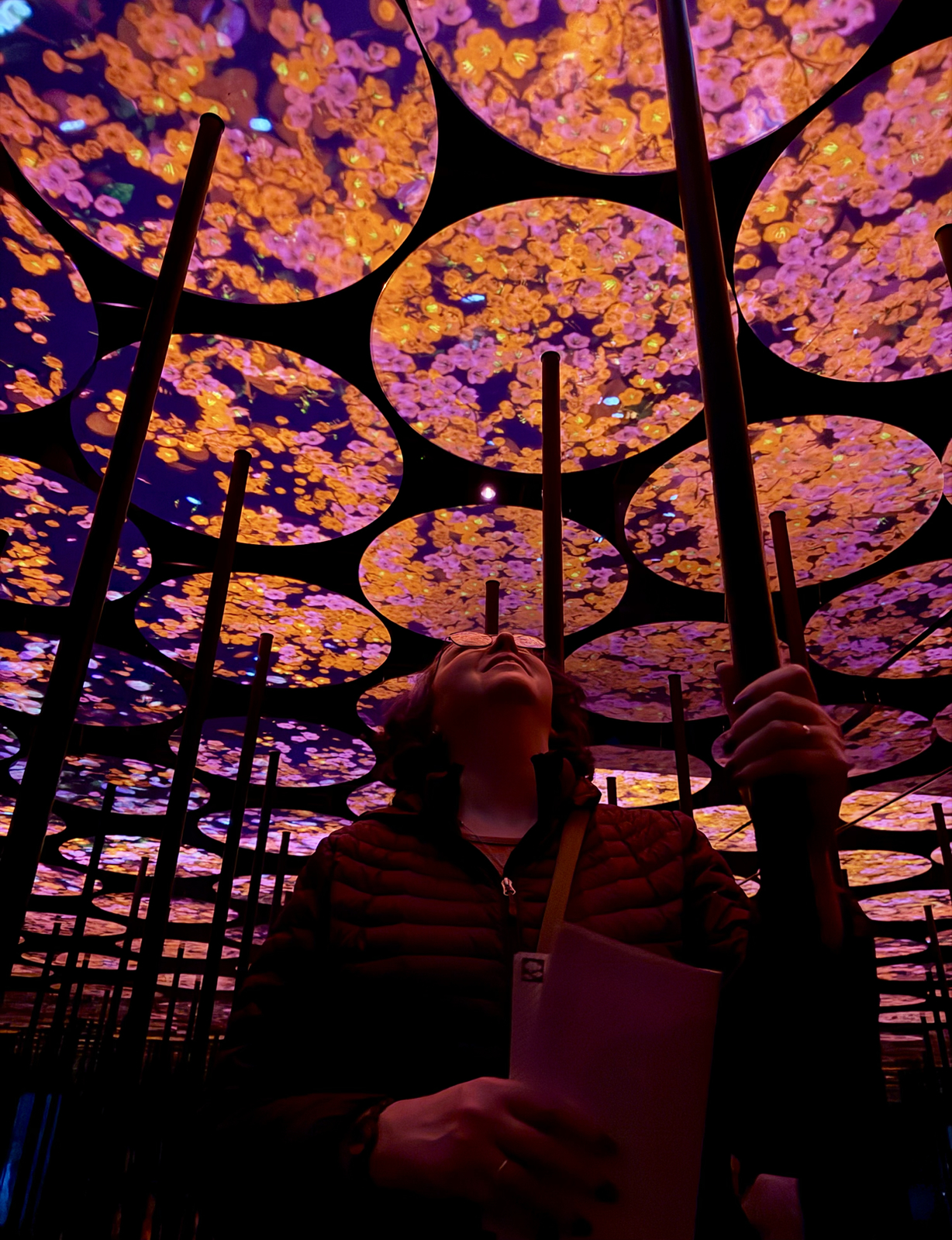 Photos hardly do this place justice. It’s a large series of interconnected rooms, each themed around art made with light and sound. The first room for instance has velvet walls and a carpeted on which flowers are projected. They move and change continuously and you are surrounded with them.