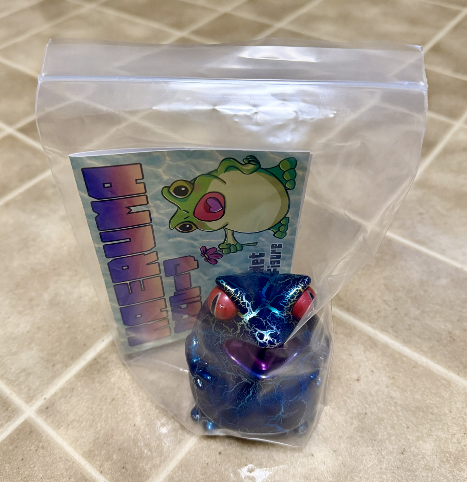 Kristin had wanted a vinyl figure for a few years now, and had even spied this guy (in a different paint job) on a previous trip. He’s a demonic little frog, and this particular version has what appears to be a dipped paint job using metallic paint.