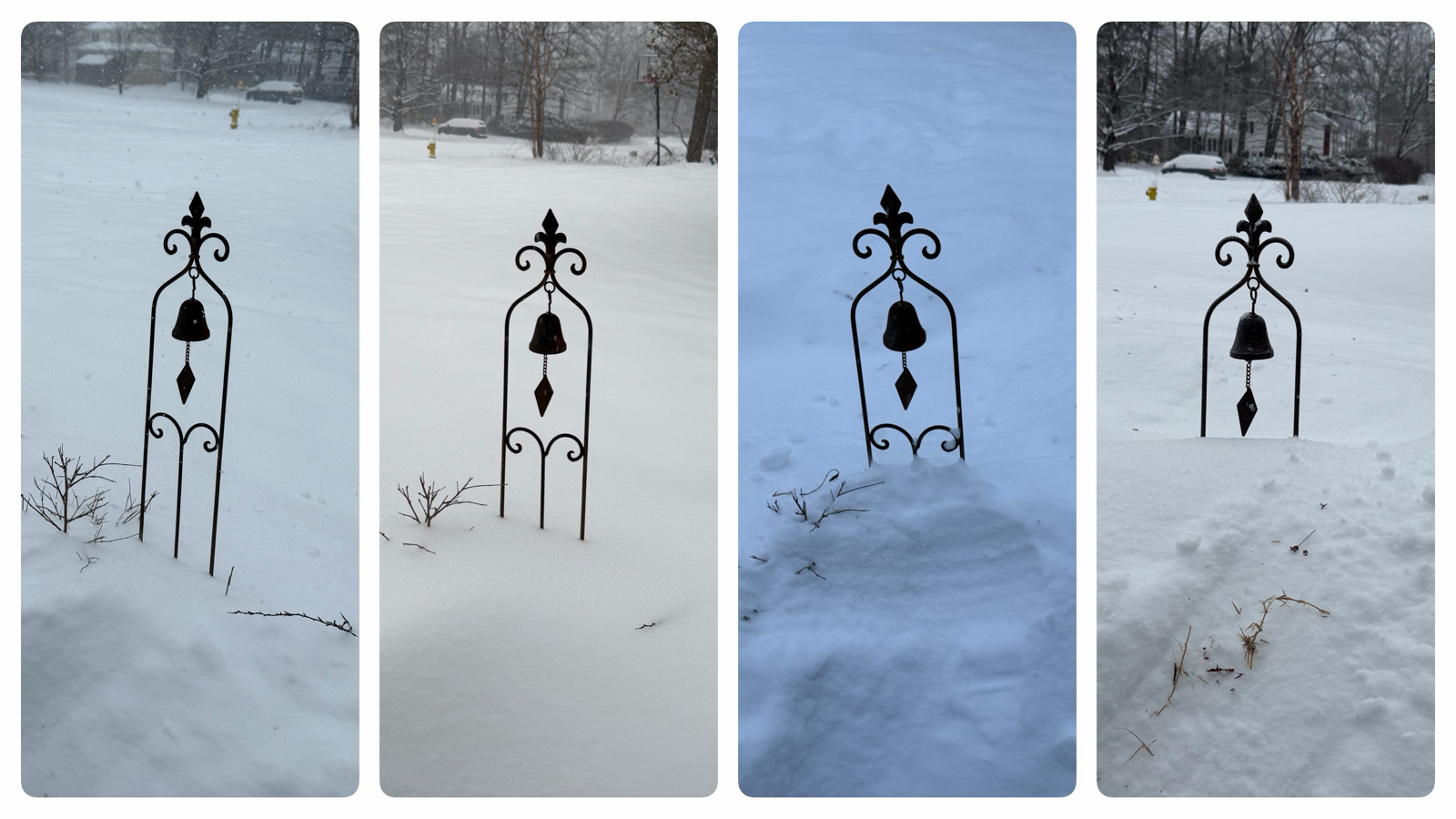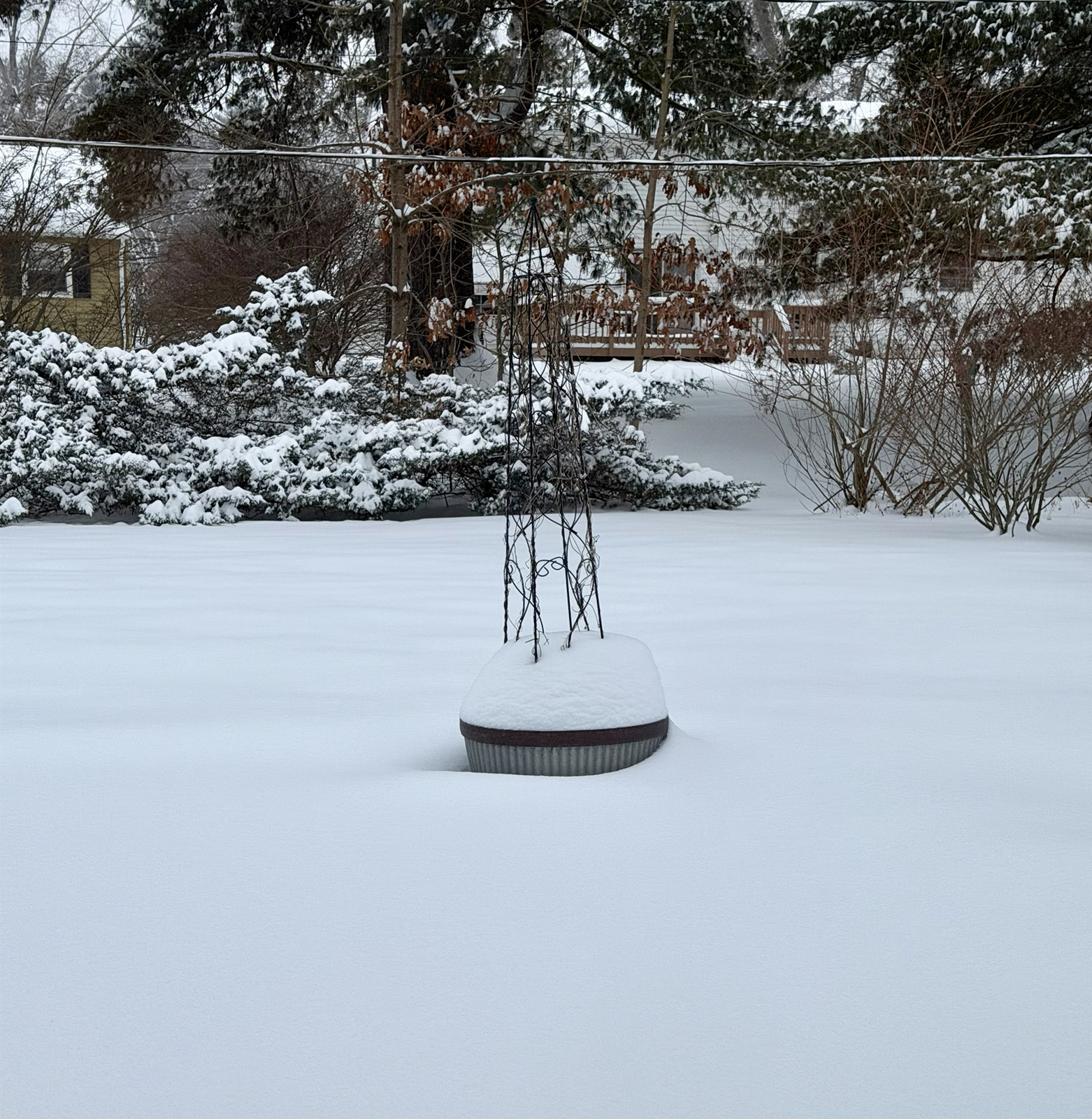 The last photo above was taken at first light Monday morning. The bird feeder remains under the snow as I write this, a day later. Since it’s going to remain below freezing for at least the next ten days I don’t expect to see it again for a while.