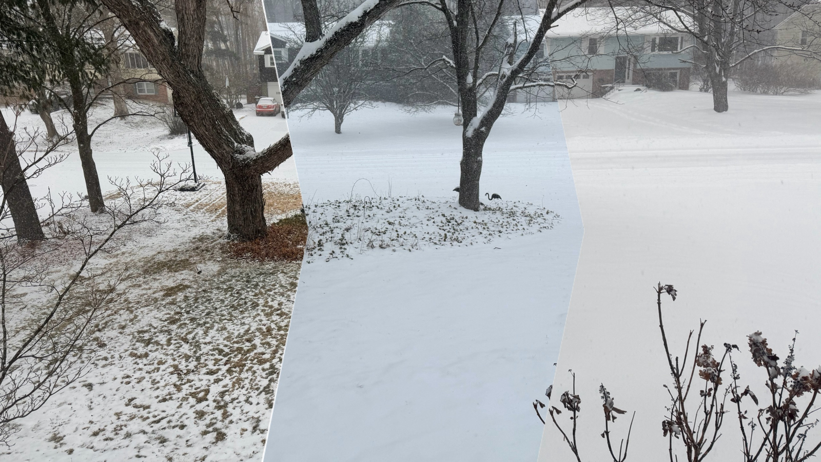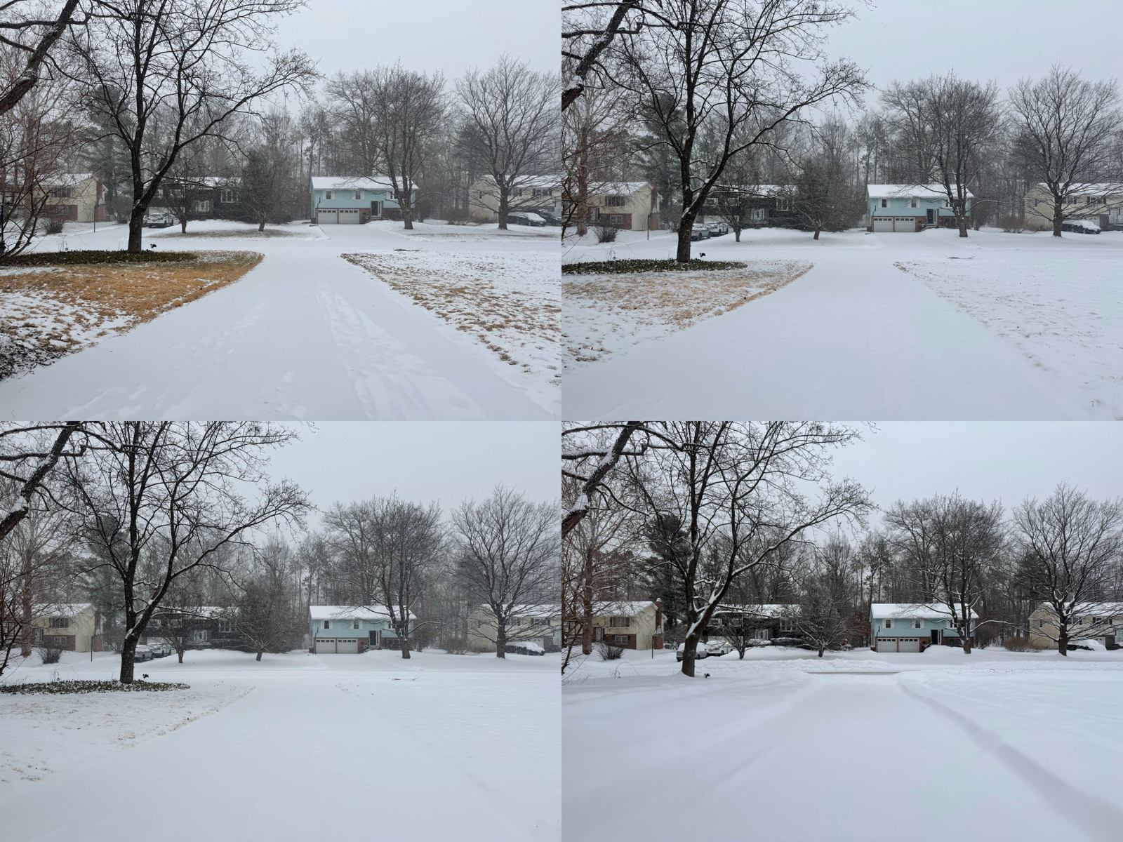 The snow began Sunday before lunch, and continued for over a day, although most of the snow had fallen before we woke on Monday.