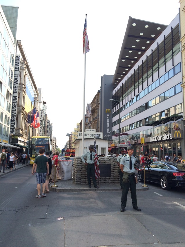 From there it was a short walk to Checkpoint Charlie. Berlin was of course once divided by The Wall, and history is very strong in this city. The wall has been mostly removed, but sections remain including a portion near one of the old military checkpoints (also preserved for tourists):