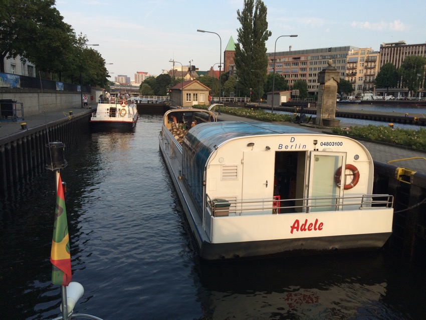 We spent a leisurely and extremely comfortable (since the sun was mostly set and the breeze strong) two odd hours cruising along the river that encircles central Berlin. We even went through a massive lock!